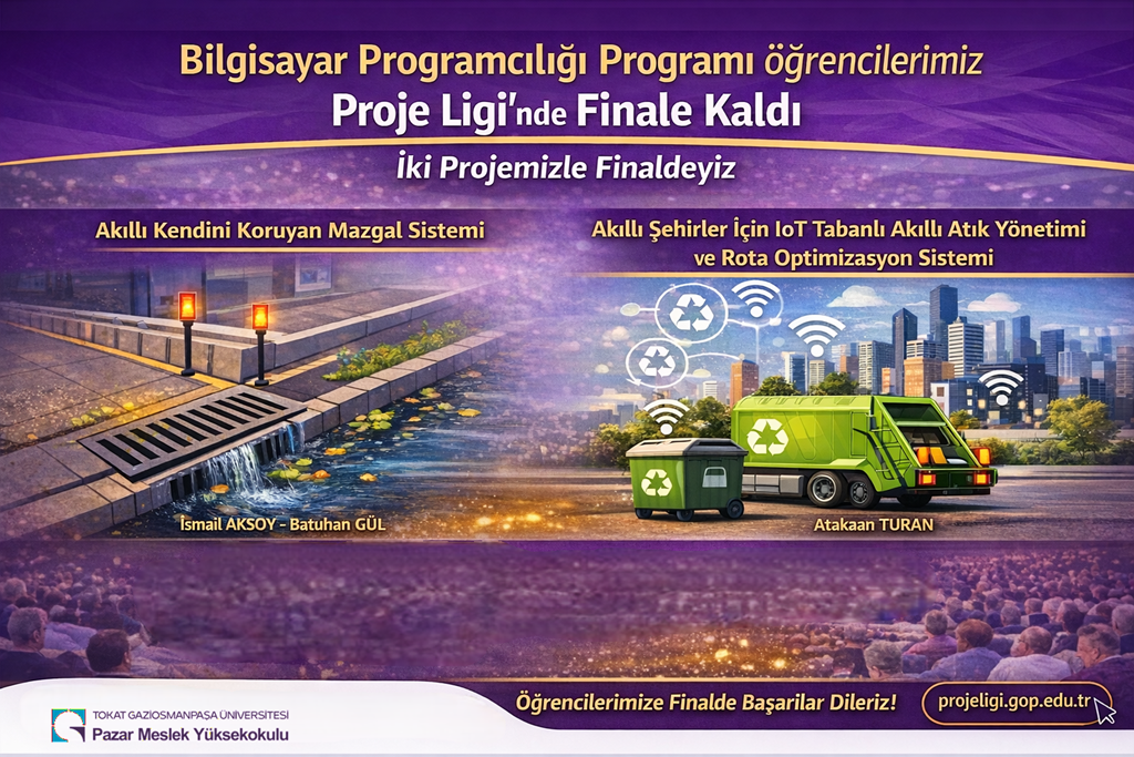 Meslek Yüksekokulumuz Bilgisayar Programcılığı Programı öğrencileri, bu yıl düzenlenen Proje Ligi yarışmasında büyük bir başarıya imza attı. Öğrencilerimiz tarafından hazırlanan iki yenilikçi proje, ön değerlendirme aşamasını başarıyla tamamlayarak finallere kalmaya hak kazandı.